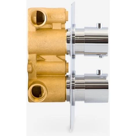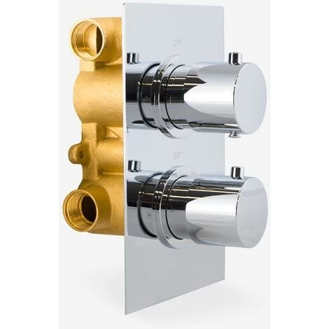 The Teslie concealed thermostatic shower valve has a unique stylish design giving your bathroom the more modern look the thermostatic shower valve is convenient and safe to use. The top dial controls water 2 outlet diverter and the bottom dial control the water temperature, we understand that safety has to be a first with our products hence why the Teslie thermostatic show mixer valve are fixed with thermostatic control, hence why the Teslie thermostatic shower mixer valve is fitted with a safety button, pre-set to 38 degrees, which prevents any accidental scalding temperatures.