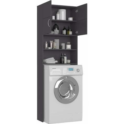 With this washing machine cabinet, you can create and optimally use additional storage space in the bathroom. The clean lines and sleek design make it blend into your bathroom perfectly. Made of chipboard, the bathroom cupboard is sturdy and durable. The 2 open compartments and 2 doors offer ample storage room for keeping your laundry utensils, cleaning supplies, toiletries and other items well organised and within reach. Additionally, this cabinet is easy to clean with damp cloth. This washing machine cupboard is easy to assemble with included mounting materials.