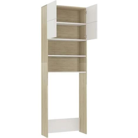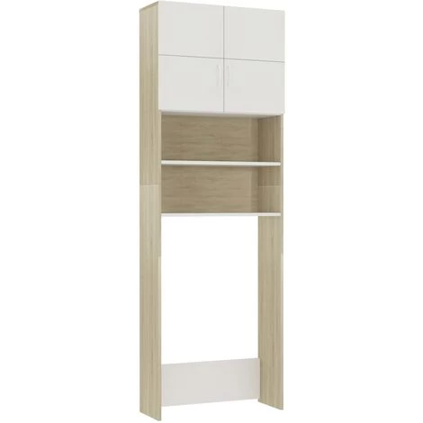 With this washing machine cabinet, you can create and optimally use additional storage space in the bathroom. The clean lines and sleek design make it blend into your bathroom perfectly. Made of chipboard, the bathroom cupboard is sturdy and durable. The 2 open compartments and 2 doors offer ample storage room for keeping your laundry utensils, cleaning supplies, toiletries and other items well organised and within reach. Additionally, this cabinet is easy to clean with damp cloth. This washing machine cupboard is easy to assemble with included mounting materials.