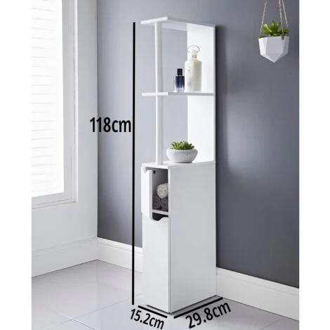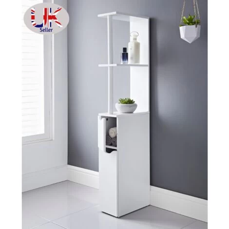 White Bathroom Storage Cabinet Tall Narrow Cupboard Free Standing Furniture Unit